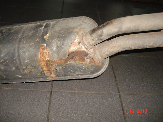 Rdza wychodząca z zewnątrz starego tłumika